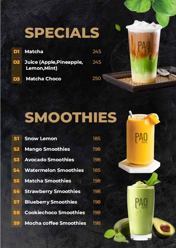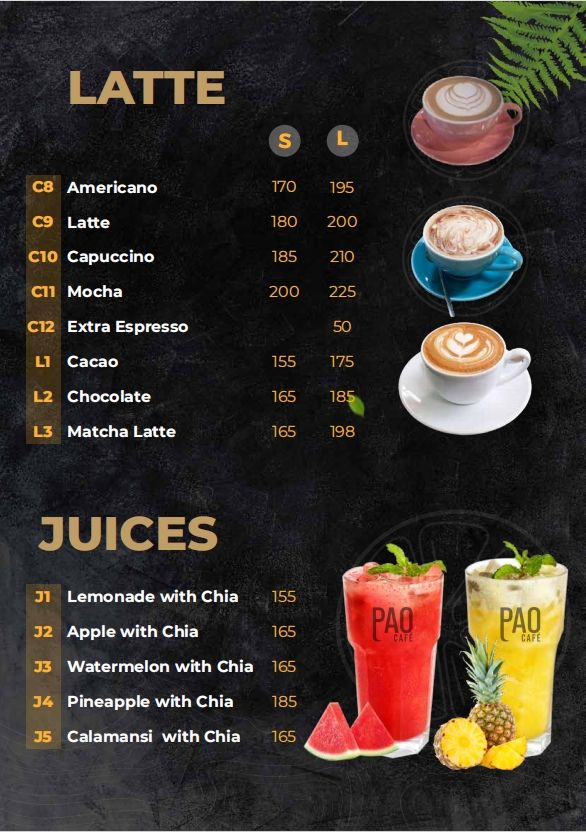 If you're ever in the mood for a cozy and laid-back spot to enjoy a bite, Pao Cafe Menu has got you covered. Located at G/F, Ags Building in Makati, it's the kind of place where you can unwind, grab a cup of coffee, and dive into a variety of comforting dishes. From their warm, savory meals to sweet indulgences, there's something on the menu for everyone. Whether you're in the mood for a quick snack or a full meal, their offerings are packed with flavor and made to satisfy. Plus, the vibe at Pao Cafe is perfect for catching up with friends or even enjoying a peaceful solo lunch. It’s not just about food, but about making you feel at home every time you visit.